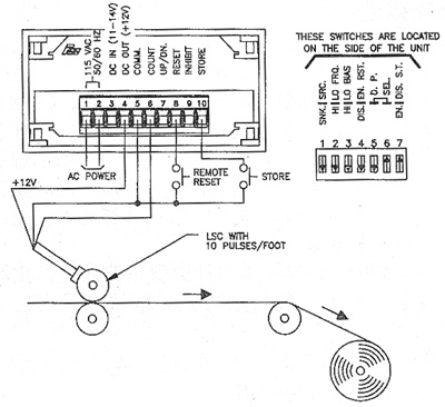 在此应用中,选用了LSC长度传感器,纸卷上的纸每增加一英尺长度传感器向APOLLO累加器发送10个脉冲。