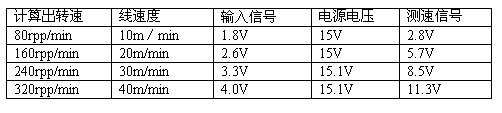 前罗拉辊直径Φ=40mm 周长=125.6mm 范围:0~150m/min (实际:20~50m/min)