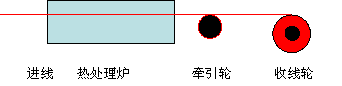 中丝热处理是对半成品钢丝通过热处理正火,消除钢丝在拉拔过程中产生的加工硬化,它是一种连续加工工艺,示意图如下: