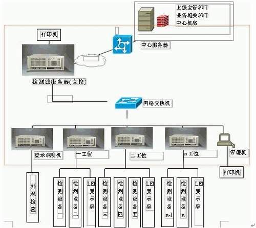 此系统用于各地车管所,系统检测主控机选用研华PCA-6006和IPC-610H整机做为硬件平台,通过网络交换机对前端几台工位机进行控制。工位机采用研华科技的PCA-6181的IPC-610H整机。每一个工控机对应相应的检测项目,工位系统各负其责,完成对数据的采集,传输,在主控机上实现汇总,处理,控制和存储进行分工,进行报表生成。