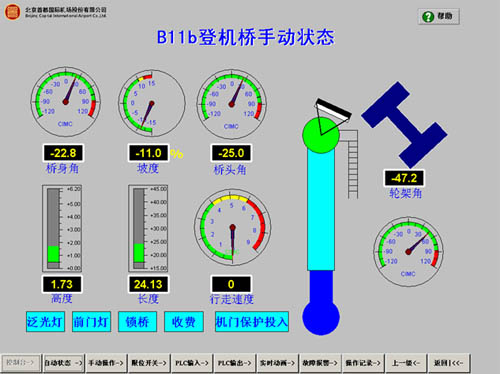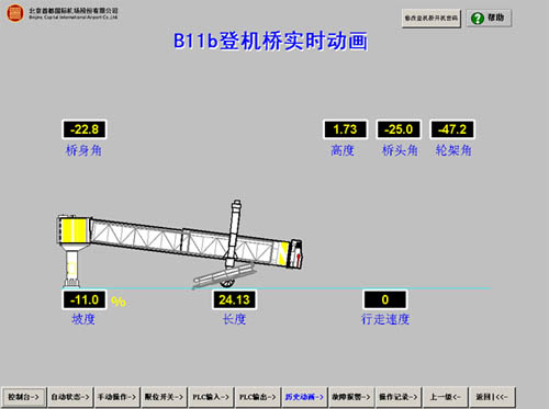 本SCADA系统应能连续采集和处理所有与设施有关的信号及设备状态信号,以便及时向操作人员提供有关的运行信息,实现安全经济运行。对登机桥的运行数据进行实时的记录,并可以通过动作回放整个登机桥的运动过程。