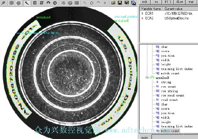(3) 通过摄像机拍摄一幅合格条光盘的图像,传送到视觉检测仪