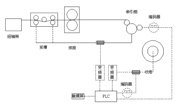 艾默生PLC和变频器在浆纱机上的应用,此电气系统采用PLC集中管理,分散控制,系统集中化,简约化,易控性强,更好的降低故障率。 方案配置如下: