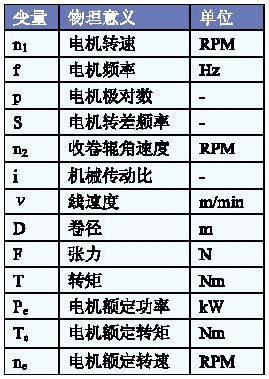 要能保证收卷过程的平稳性,不论是大卷、小卷、加速、减速、激活、停车都能保证张力的恒定。需要进行转矩的补偿。整个系统要激活起来,首先要克服静摩擦力所产生的转矩,简称静摩擦转矩,静摩擦转矩只在激活的瞬间起作用;正常运行时要克服滑动摩擦力产生地滑动摩擦转矩,滑动摩擦转矩在运行当中一直都存在,并且在低速、高速时的大小是不一样的。需要进行不同大小的补偿,系统在加速、减速、停车时为克服系统的惯量,也要进行相应的转矩补偿,补偿的量与运行的速度也有相应的比例关系。在不同车速的时候,补偿的系数是不同的。即加速转矩、减速转矩、停车转矩、激活转矩;克服了这些因素,还要克服负载转矩,通过计算出的实时卷径除以2再乘以设定的张力大小,经过减速比折算到电机轴。这样就分析出了收卷整个过程的转矩补偿的过程。