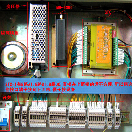 (1) 因为STC-1用24V直流供电,所以接一个220V转24V的变压器,同时提供RTU、DTU的供电