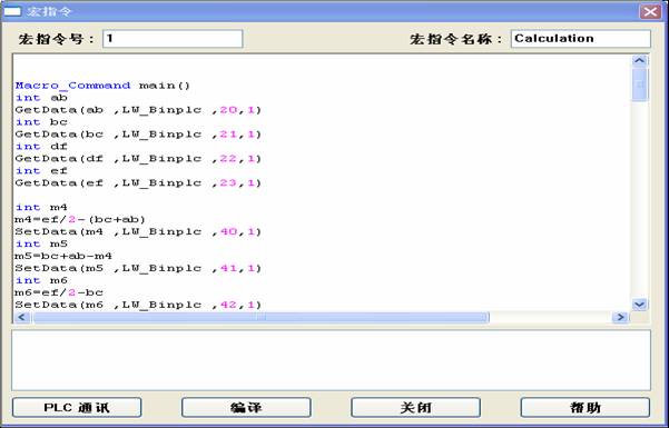 下面这幅图是纸盒进料的初始图,图5左边的数据是读取PLC的相关数据这里可以根据产品的规格进行参数的设置然后通过按执行按钮来执行宏指令对读取上来的数据进行运算;然后将相关的数据传送给PLC。图6是相关数据的定义与运算过程宏指令的触发通过PLC控制元件来设置触发。如下图所示:
