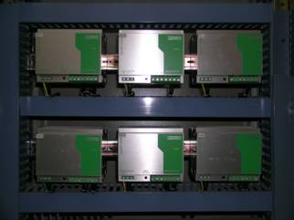 马钢新区项目中共采用PHOENIXCONTACT QUINT POWER系列开关电源(2.5A、5A、10A、20A)500多台,分别安装在各个电气、控制室、各液压站的控制柜内以及现场控制箱内。(图2-3,QUINT POWER系列开关电源)