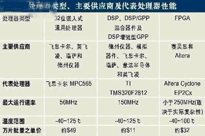 DSP、DSP/GPP混合器件以及DSP增强型GPP一般用于车内信息娱乐系统及需要信号处理功能的控制系统。这些处理器带有特殊的功能,包括多积聚硬件、大容量存储带宽,以及采用多运行算法的指令。这些特性综合起来,可大大加速数字信号处理算法,比同样时钟速率的GPP要快得多。