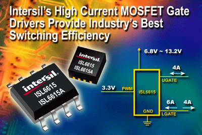 美国加州、MILPITAS — 2008年5月16日 — 全球高性能模拟半导体设计和制造领导厂商Intersil公司(纳斯达克全球精选市场交易代码:ISIL)今天宣布,推出高频 6A 吸入电流同步(sink synchronous) MOSFET 栅极驱动器 ISL6615 和 ISL6615A 。这些新器件有助于为系统安全提供更高的效率、灵活性和更多的保护功能。