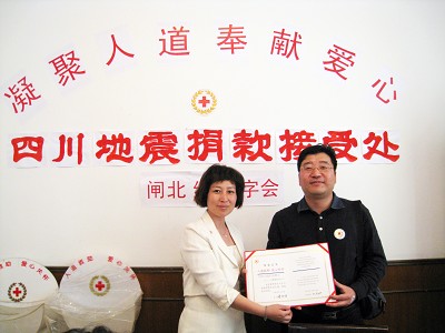 中国区销售总监张松代表 Hans Beckhoff 先生向上海闸北区红十字会捐款 100000元人民币。