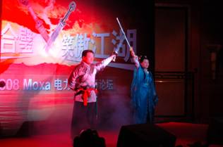 2008年4月一场特殊的“舞台剧”在全国四地(北京、南京、广州、上海)巡回上演。所有演员均来自享有“亚洲设备联网领导品牌”之称的Moxa,观众则是全国的电力与交通行业相关人士,场面火爆程度超乎想象。此次 Moxa 摒弃了以往研讨会枯燥乏味的单一形式,突破自我,以全新的理念和创意,将会议内容融入武侠元素,给行业客户带来赏心悦目的新感觉。