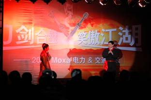 因配备了天下第一的“屠龙刀”和“倚天剑”,且掌握了上乘武功“降龙十八掌”, MOXA得以一直笑傲于风云变幻的“江湖之中”。在最后一幕中,“江湖高人”——MOXA中国区总经理侯武明先生也登台亮相,与左、右二使一起为来宾呈现了Moxa在电力和交通中的多个应用案例。