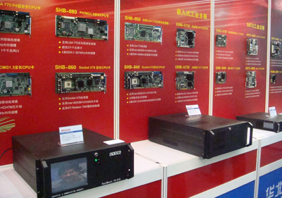 华北工控展台展示的嵌入式板卡及工业整机