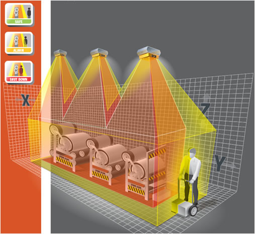 通过使用复杂的3D成像软件,当工人进入危险区域时, QuadCam 能即时检测出来,它能辨别1个,2个或更多人,在其检测范围内提供实时的人员跟踪。 QuadCam防止了设备过早的重新启动。