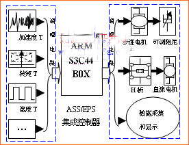 车辆底盘控制通过电控系统改善底盘的动力学特性,提高车辆的主动安全性和驾驶舒适性,是当前汽车研究领域的热点之一,是今后底盘系统的发展方向。目前国内汽车底盘集成主要集中在对防抱死制动系统(ABS)、牵引力控制系统(TCS)、驱动防滑转系统(ASR)和自动巡航系统(ACC)的集成上[1-4],对车辆悬架系统和转向系统集成控制的报道尚不多见。本文对半主动悬架和电动助力转向的集成控制器进行了设计,采用嵌入式系统SAMSUNG S3C44B0X,选用模糊控制算法和PID算法分别控制SASS和EPS,试制出基于嵌入式系统的集成控制器,台架试验表明该集成控制器取得了较好的效果,可以达到设计要求。