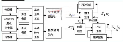 研究的悬架系统是减振器可调阻尼式半主动悬架(广义上称为主动悬架,ASS),转向系统是电动助力式转向。