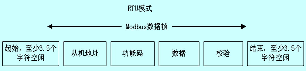RTU方式:在RTU方式下,帧之间的空闲时间取功能码设定和Modbus内部约定值中的较大值。Modbus内部约定的最小帧间空闲如下:帧头和帧尾通过总线空闲时间不小于3.5个字节时间来界定帧。数据校验采用CRC-16,整个信息参与校验,校验和的高低字节需要交换后发送。具体的CRC校验请参考协议后面的示例。值得注意的是,帧间保持至少3.5个字符的总线空闲即可,帧之间的总线空闲不需要累加起始和结束空闲。