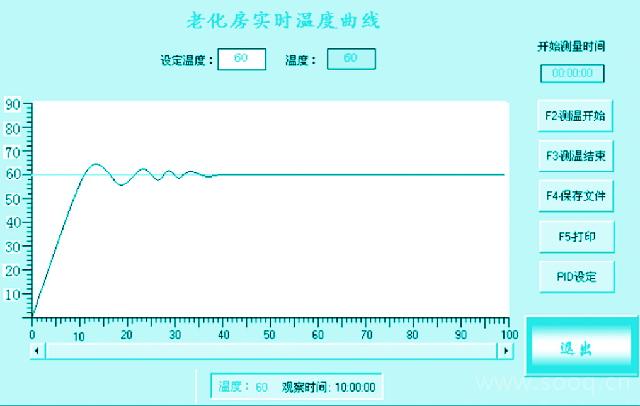 实时温度监控画面如图5所示,此画面主要用于对温度的实时监控,并描绘出温度曲线趋势,以便判断系统的温度控制是否处于良好状态,同时可以实现对温度进行保存/打印等操作。