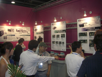 eBOX嵌入式工控机和GOT超薄平板电脑是本次展示中的精品。陈文治先生介绍说,嵌入式产品的应用将会更加广泛,成为市场的主流产品,无风扇和宽温特性则是艾讯嵌入式产品的亮点。eBOX是艾讯科技研发推出的一系列无风扇、宽温、低噪音、且低耗电(功耗)的超薄嵌入式系统,满足用户对高效能、低功耗、宽温、零噪音的应用需求,非常适合长时间运转在恶劣环境下的使用场合。陈先生还提到嵌入式技术是艾讯的一贯强势所在,公司拥有强大的研发实力和丰富的产品经验,产品可以广泛应用于医疗环境、自动提款机、游戏机、工厂自动化等领域。