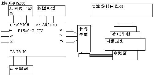 A 在该系统中,变频器采用外部端子控制,数控系统发出的DC 0-10V 信号通过变频器的AN1——GND 端子送入变频器,实现数字量设定转速对模拟量变 频输出的控制。电机转速的高低由数控系统输出的电压信号的大小来控制。