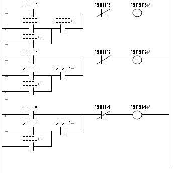 库层感应由每层4角主平层行程开关的闭合与断开完成,感应出库层信号,用于指层、选层、选向、门厅呼叫的信号等。要求感应信号是连接的,该信号只有在载重箱移动至上层或下层时才消失。载重箱的上下感应信号都来自每层4角主平层行程开关00401-00405的触点。当载重箱在1层时,1层4角主平层行程开关00401闭合,则1层库层和指层中间继电器20011接通并保持,同时切断20002。可见,载重箱上升至某一层时,相应的库层感应中间继电器接通指层中间继电器。当载重箱下降时,原理同上,该电路梯形图如下图所示。