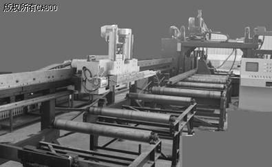 2. 钢结构、桥梁中H型、C型钢上在施工中要通过联接板与其它型材进行联接、固定。传统的加工方式是人工在工件上划好线,然后用摇臂钻床钻孔,即费时费力,精度又不高。三维数控钻床实现了定长送料,送料到位后,三个钻削动力头分别从两侧及上方对H型、C型钢进行钻孔。大大提高了送料精度与联接板孔群的精度,提高了加工效率,使传统的手工加工行业发生了巨大变革,向高效、高精度的数控加工方面发展。