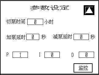 在软键盘中设定切泵时间,单位为小时,设定后轻压“Enter”确认。按上面的方法依次设定加泵时间和减泵时间,单位为秒;用同样的方法对P、I值进行设定。