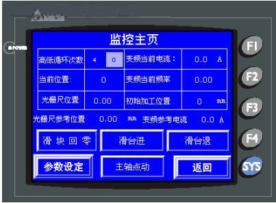 系统要求珩磨和“凸点”检测同时进行,珩磨的厚度主要由珩磨油石、油压控制检测的光栅和PLC共同实现,由于台达32EH00M伺服控制专用PLC系列能够接收2信道差动输入,所以无需其它转换电路,光栅尺信号可直接接入PLC,且同时将伺服驱动的分频输出直接输入PLC,以便实时检测机台的绝对位置。在实际的珩磨过程中,因工件内圆的“凸点”存在,由此形成珩磨变频马达电流瞬间的一个峰值,利用系统核心PLC记忆该电流峰值形成时的位置,然后控制伺服小车在此“凸点”珩磨摆动的次数,达到预期的珩磨精度,同时也可以根据光栅尺内圆半径的检测,自动研磨至设定的厚度。所以该系统采用变频负载/电流线性对应关系,完成了对加工工件内圆的“凸点”检测。台达V系列变频为全矢量高性能的驱动,能够快速精确反应出负载电流的变化,而台达PLC采用通讯方式快速采样变频器电流为该系统的关键所在。