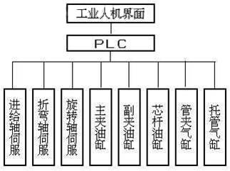 国外的一些弯管机厂商经常采用FUNAC、SIEMENS等数控系统作为上位控制,三个轴或部分或全部采用进口伺服作为传动,设备的响应速度和定位精度较高,并且可操作性好、维护简便。而国内的厂商在关注通用性能的同时,还关心两点:一是如何能满足自身加工生产的一些特殊需要,另一个就是成本如何能降低。我公司技术人员通过对客户功能需求进行分析,确定采用人机界面(HMI)和PLC实现上位控制,用交流伺服电机作为传动,完全可以完成以下性能要求:手动、半自动、全自动等多种操作方式,并可满足有芯棒和无芯棒、单角度和多角度、二维角和三维角选择等不同控制要求场合的特定需要,可存储上百种产品型号,每种型号可设定多个弯管角度参数和旋转角度参数,可满足多种复杂、多角度、不同空间的要求,并可对工作进度进行实时监控显示。