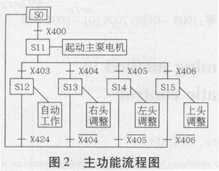 第一步的定义可由顺序功能流程图描述,图2所示为本例主功能流程图。它从功能入手,以功能为主线,将生产过程分解为若干个独立的连续阶段(步) 。