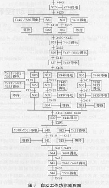 分解的各步可以是一个实际的顺序步,例如步1,对应的动作是起动主泵电机,也可以是生产过程的一个阶段,例如步2为自动工作过程,其功能流程图见图3。