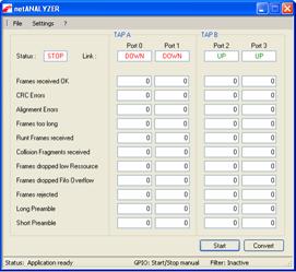 在安装上netANALYZER分析仪驱动和软件后,运行netANALYZER软件,如图4所示,如果硬件上连接上其中一个TAP口,在图上会显示出连接状态,同时可根据netANALYZER上LED进行状态判断,本例中连接TAP2口。