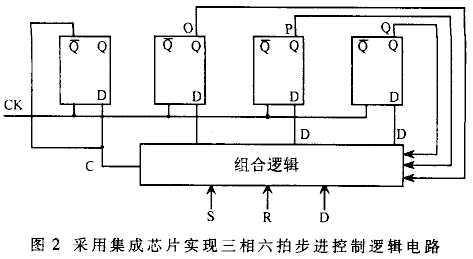 按照电机的激励规律,在时序脉冲作用下,时序电路的状态将在六个状态中循环,驱动电机运转。这里用a、b、c、d、e、f分别表示其六个状态,即a=100、b=110、c=010、d=011、e=001、f=101。根据逻辑电路图可得其状态表,如表1所示。