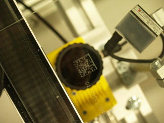 编码被用于激光系统雕刻。挑战以选择合适的视觉系统读码的形式出现。对于玻璃上的激光数据矩阵码来说,真正的难题是雕刻与周围表面间的低对比度。各种产品经检测后,便决定使用康耐视In-Sight 5400/5100视觉系统。该系统能在难以识别的表面及超过2米的读码距离的进程中,检测并解译难解的代码。19个处理步骤遵循着激光、包括基底涂层应用的所谓模板“生产”以及随后的激光构造赋予模板其细胞形状。质量检查在此刻非常重要,是模板清洗后的关键生产步骤。模板有适用于600°C的CIS涂层。经过增加缓冲涂层的化学处理后,数据矩阵再次被检测。随后将氧化锌用于太阳能电池的可透光前触点完成光电二极管。在之后的最终完成阶段,将模板上转出的额外孔作为导向电子设备的触体。