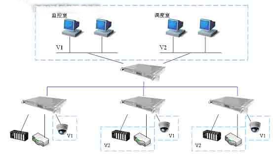 图中采用的工业以太网交换机部分均为卓越信通TSC Carat2024FC2-E,网络结构为星形结构。由于考虑到星形结构结构简单,便于管理和维护,且易实现结构化布线,易扩充、易升级等特点,因此在该方案中采用了传统星形结构网络结构。