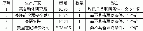 某矿业(集团)公司共有八个煤矿需要进行联网监控,每个矿都有一套独立的监测系统在使用,但不是同一个厂家的产品。具体如下:
