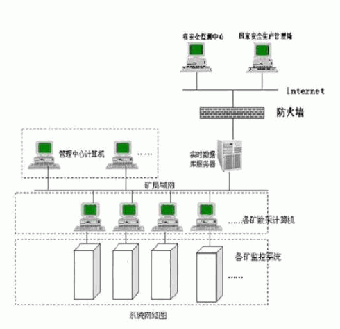 某矿业(集团)公司安全生产监测系统是在生产、安全及管理方面的一个实时监控系统,对于煤矿的生产运行状况、安全水平、灾害预测预报具有重要的作用。为了加强集团公司对下辖各矿的安全生产管理,利用现有网络资源掌握各个下属煤矿的安全和生产情况,某矿业(集团)公司建立了一套安全生产监测信息系统,将各个下属煤矿的实时监测数据集成在公司调度室,形成公司一级的安全生产监控网络,各个下属煤矿又把所属的每个矿井的生产和安全数据集成在矿调度室,组建矿一级监控子网,使公司从上到下各个部门以及领导都可以随时掌握各个煤矿和矿井的生产状况和安全状况,并可以进行综合性动态分析,为领导决策提供依据,实现资源共享。
