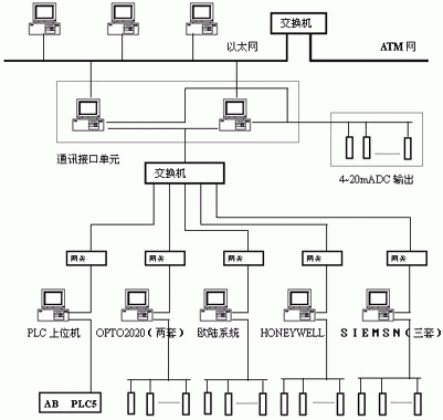8. 通讯接口单元和调度室三台主机并入厂以太网,通过交换机实现与总公司ATM网的连接RTDB系统相连。