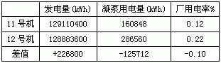 表3 2004年4月份11号、12号机凝泵厂用电率统计