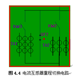 其中TA1与TA2为不同量程的电流互感器,通过QF2、KM1和KM2之间的切换,可选择不同量程的电流互感器接入。可以通过电流继电器作相应的切换,从而选择出对应的被测电流。由于电流互感器测量时次级是不允许开路的,所以在进行电流换档时,要求将要换去的电流互感器,先短路原边测量线圈,然后再断开副边线圈。而要换上的电流互感器则先接通副边线圈后断开原边线圈。