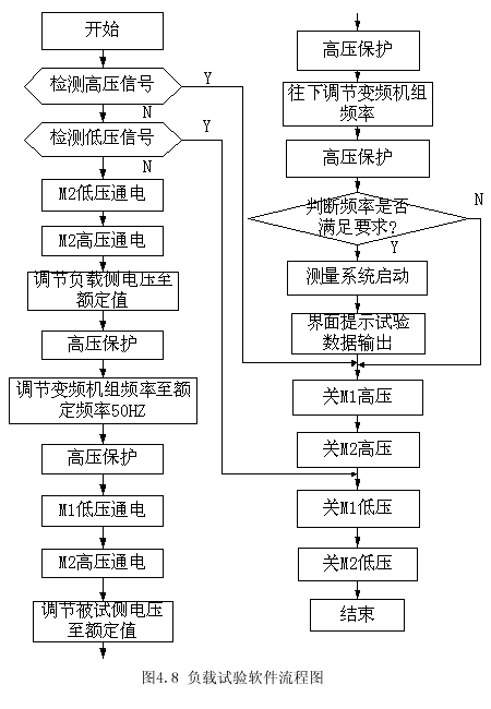负载试验必须保证变频机组的频率在规定范围8~50Hz内变化,其对应的软件流程图如图4.8所示: