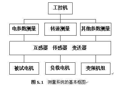 信号采集系统如下图5.2所示,它由传感器 、信号处理电路、A/D板、扭矩仪、工控机等组成。被试电机带动负载电机,被试电机与负载电机之间接有转速传感器以测试在不同的施加负载下电机输出的转速、转矩和功率。3只电流传感器用于检测三相电流;3只电压传感器用于检测电机的有功功率;一只三相无功功率传感器用于检测电机的无功功率。还设置了温度传感器用于检测电机温升。模拟信号又信号处理电路处理后,分两路,一路送数字仪表显示,另一路又A/D板采集后送工控机进行处理和组态监控。转矩转速传感器检测信号由微机扭矩仪显示并通过RS-485串口送至工控机。信号采集处理由传感器、信号处理电路、A/D板、扭矩仪、工控机共同完成。值得说明的是,功率因数、电机的输出功率、电机效率不是直接测量出来的,而是通过以上参数运算间接获得。