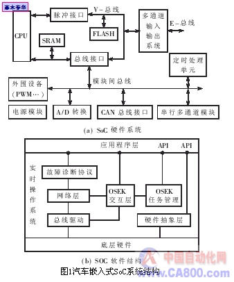 汽车嵌入式系统近年来发展非常迅速,随着后PC时代的来临,基于网络通信和实时多任务并行处理的嵌入式高端应用将会越来越广泛。汽车嵌入式SoC系统在硬件上采用32位或64位高性能处理器,在软件上嵌入了实时操作系统,具有功能多样、集成度高、通信网络化、开发快捷及成本低廉的特点,在汽车电子控制和车载网络通信系统方面有着广泛的应用,是未来汽车电子的最佳解决方案。