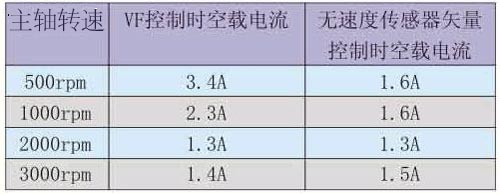 从上表可以看出在恒转矩输出的频率段(0-50Hz),矢量控制的空载电流几乎只有VF控制的一半,负载时电流也比VF小一些;而且负载切削时,VF控制在初期有很明显的速度下降,而且空载速度和负载速度有比较大的差值。而相对于矢量控制,主轴转速初期虽然也会有下降,但是下降值较小,并且速度会很快回升,最终空载速度和负载速度相差不是很明显。经过上面的调试,相比较原来的VF控制,性能有了很大的改善,无论从空载电流,低速力矩,还是速度的变化,效果都是非常明显的,完全能够满足数控机床的需求。