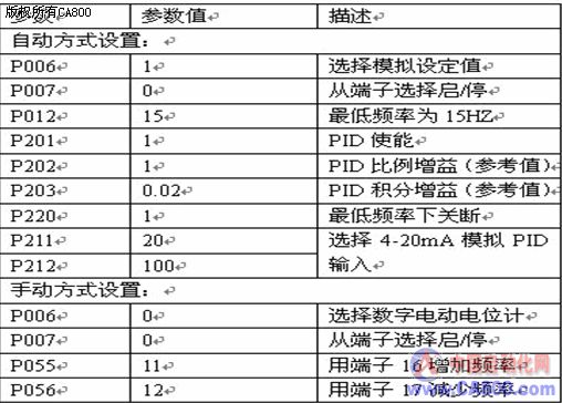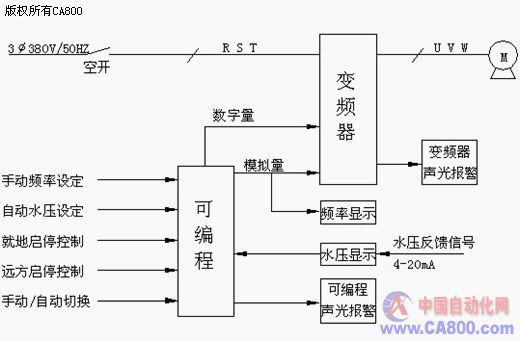 为了保持供水系统水压的基本恒定,需要变频器根据给定的压力信号与管网水压的反馈信号进行比较,以调节水泵的转速,达到供水、水压恒定的目的。