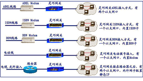 灵巧网关具有经济易用,适应性强大,部署管理简便的特色。具备防火墙与VPN的核心功能,定位于小型网络和分支机构,能够方便地和总部或ISP进行连接。系统可以自动通过拨号、ISDN、ADSL、DDN完成到ISP的连接,并在这个连接上建立与总部网关的加密通道,通道建立后自动加载内网到Internet和内网到总部服务器的两个NAT规则,因此客户的本地网络对总部完全隐藏,无需为实现互连而重新部署,节省路由器的投资,特别适合大规模VPN方案的部署。
