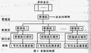 通过以上分析,本设计采用二极集散式控制体系,每个CASS池由一台联锁机进行控制,所有PLC都由同一台上位机(管理机)进行管理显示。测控系统结构如图3所示。