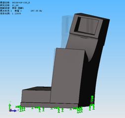我们利用COSMOSWorks的频率分析功能,研究了64式砂轮架移动式中心架。经过对各种配置的中心架模型的频率分析,测出V5H5中心架模型的基振频率为247.85Hz,而H18V25中心架的基振频率是319.98Hz,显然,H18V25型的也就是托头与水平、垂直方向夹角较大的中心架模型其动刚度比较高,工作较稳定。同时,通过分析我们还了解到对于基振频率,其激振形式是左右晃动,由此可以通过在适当处加筋板来提高刚度。