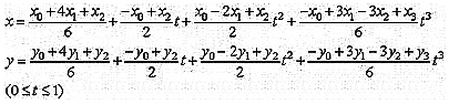 本系统采用三次B样条曲线作为精插补算法,该算法应用在控制卡中可以得到比较满意的效果。计算过程中只需要相邻4个点的位置数据,(x0,y0),(x1,y1),(x2,y2),(x3,y3),就可以构造出平滑的曲线。