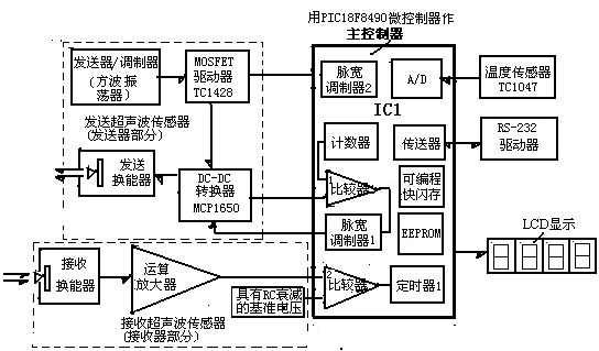 图3:为用微控制器PIC18F8490作为主控制器(IC1)与发送超声传感器